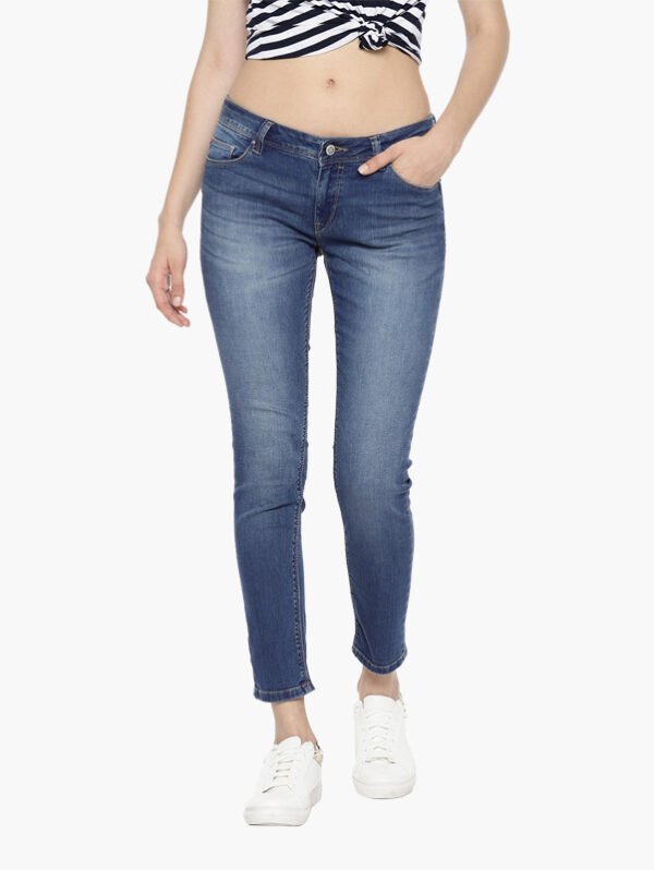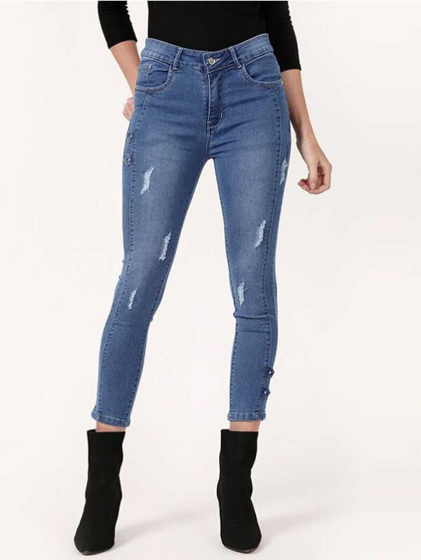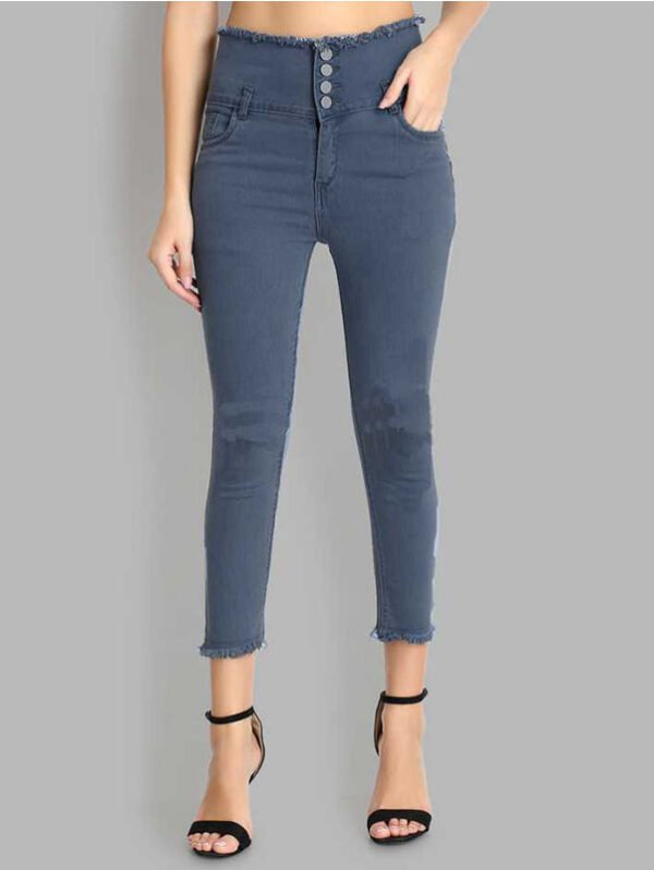 5 Button Stretchable Ankle Length Denim Lycra Slim Women Grey Jeans